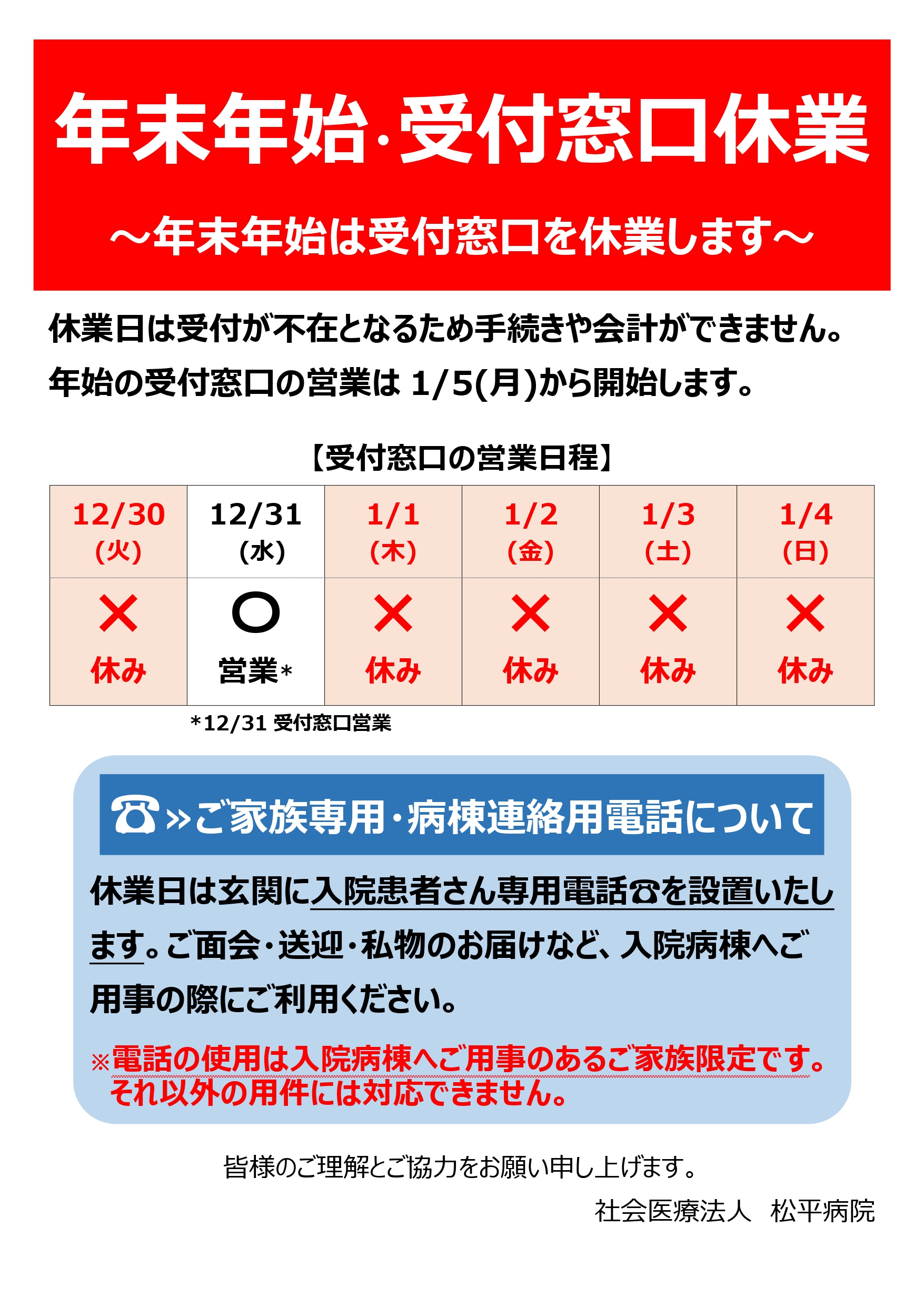 年末年始(12月30日~1月3日)